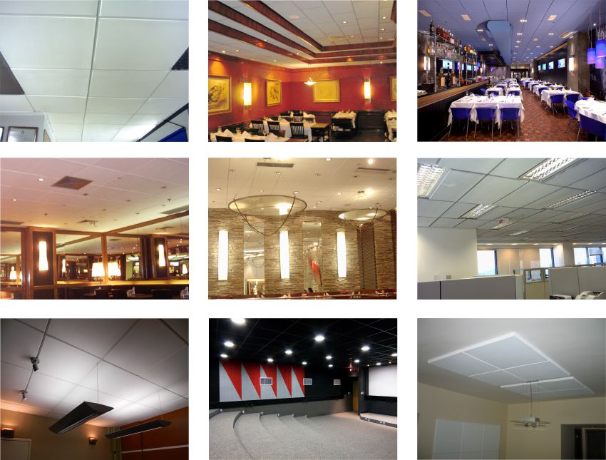 Os materiais de absorção sonora podem ser aplicados tanto em paredes quanto em tetos e pisos, de forma a garantir que o tempo de reverberação do som no ambiente seja mais baixo. Dependendo do formato e da quantidade de pessoas em um ambiente, pode ser necessário usar elementos refletivos sonoros para que o som chegue com mais propriedade em algumas posições de audição que são menos favorecidas, como por exemplo, nos fundos de salas de aula.