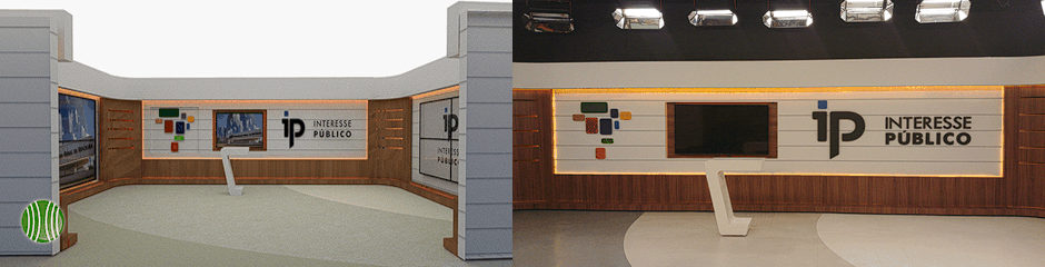 Confecção de cenários para podcast, estúdio de rádio e TV,