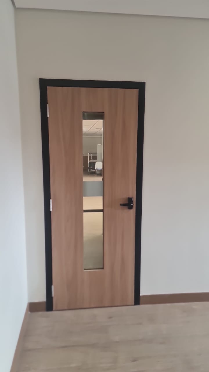 Técnica Acústica: Produz portas de madeira dupla com isolamento de 40dB, com várias opções de acabamento e dimensões.